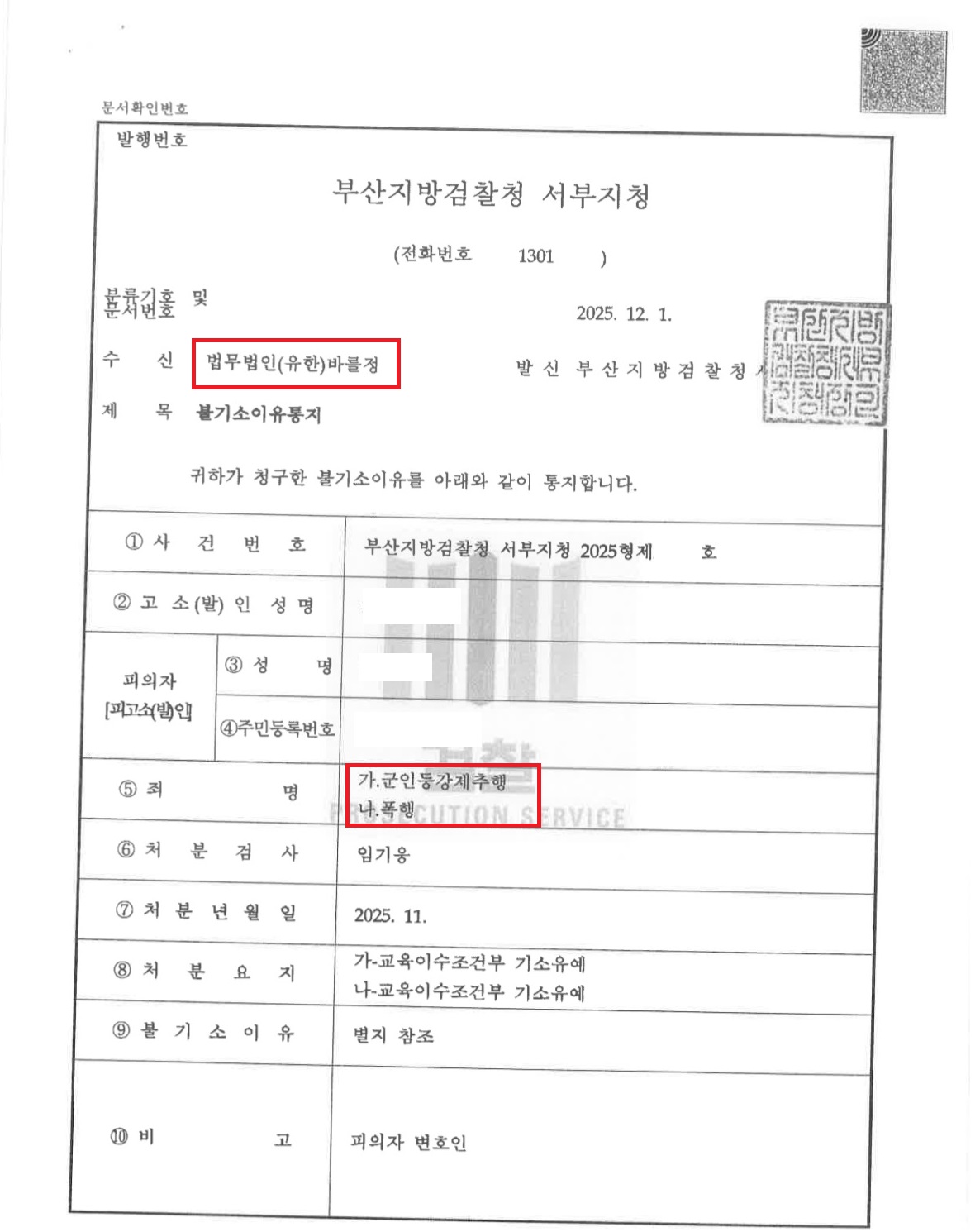 [ 창원군변호사 ] 군인 강제추행 폭행 혐의 기소유예 처분 사례
