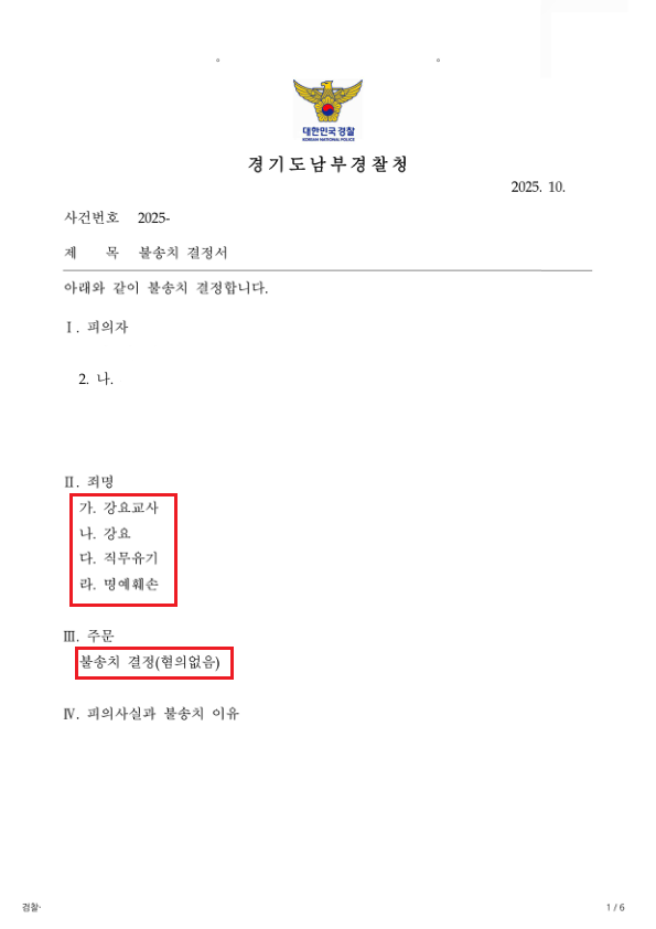 변호인의 주장이 수사기관에서 받아들여져, 본 사건은 강요죄 불송치결정으로 종결되었습니다.