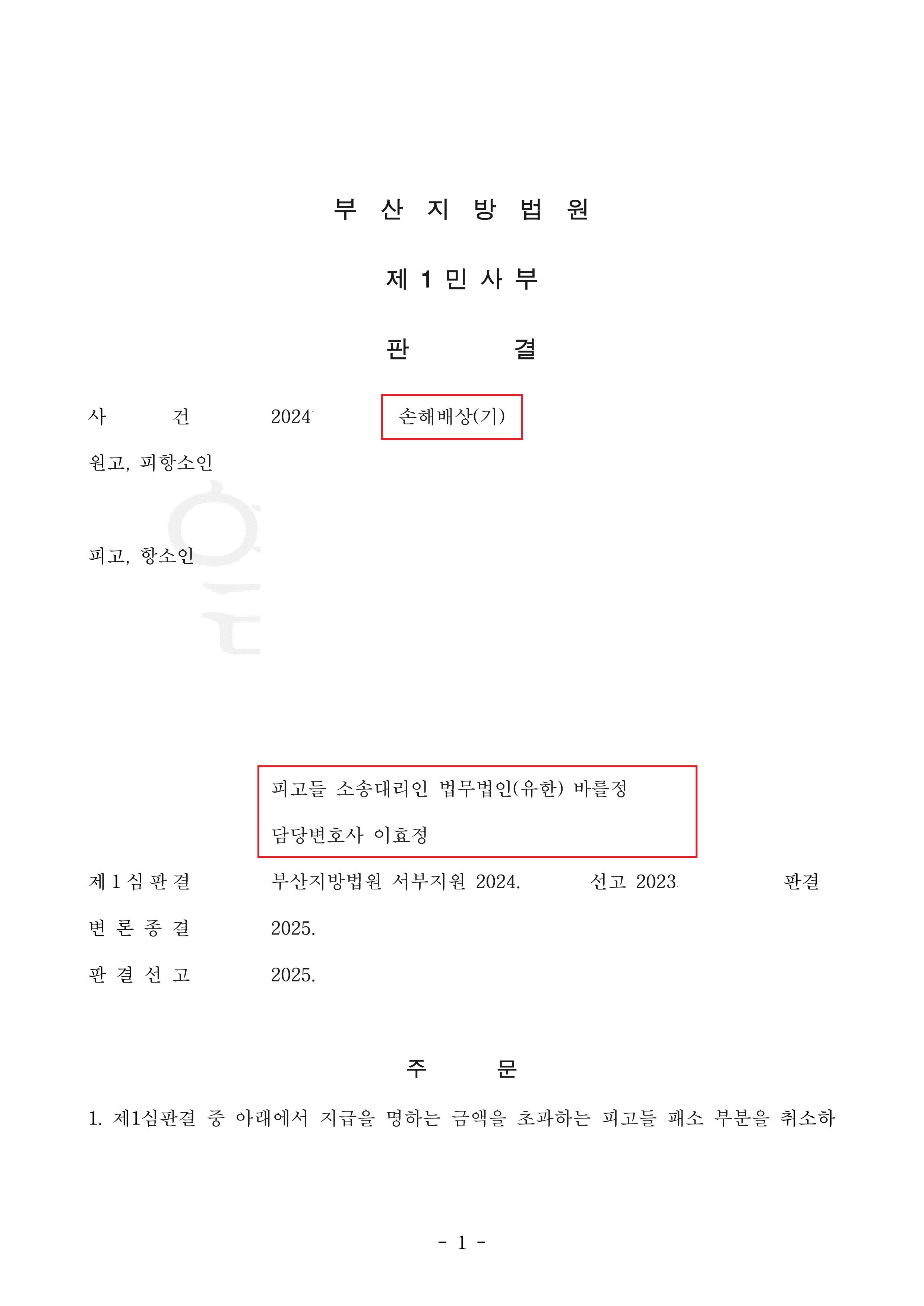 원고 측 주장한 * 원에 대해 전부 손해는 인정되지 않았으며