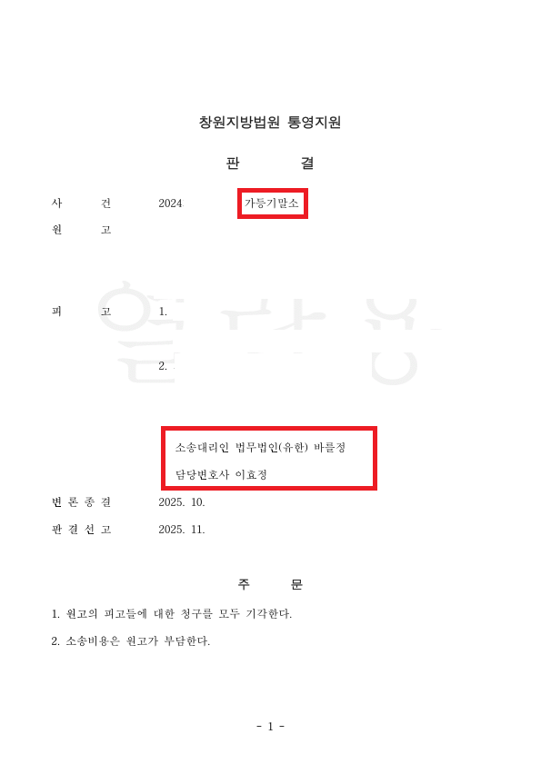 법원은 피고들의 주장을 모두 인정하며 원고의 청구를 전부 기각하였습니다.