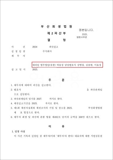 부산회생법원 법인회생사건에서 포괄적금지명령